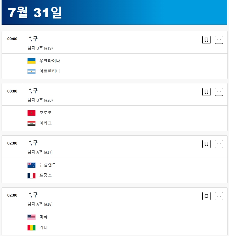 2024 파리 올림픽 남자 축구 조별리그 일정은 다음과 같습니다