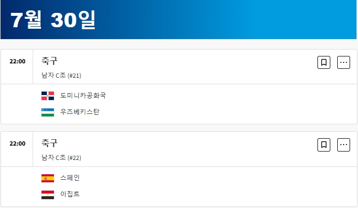 우즈베키스탄 1-2 스페인 (C조) 이집트 vs 도미니카 공화국 (C조)