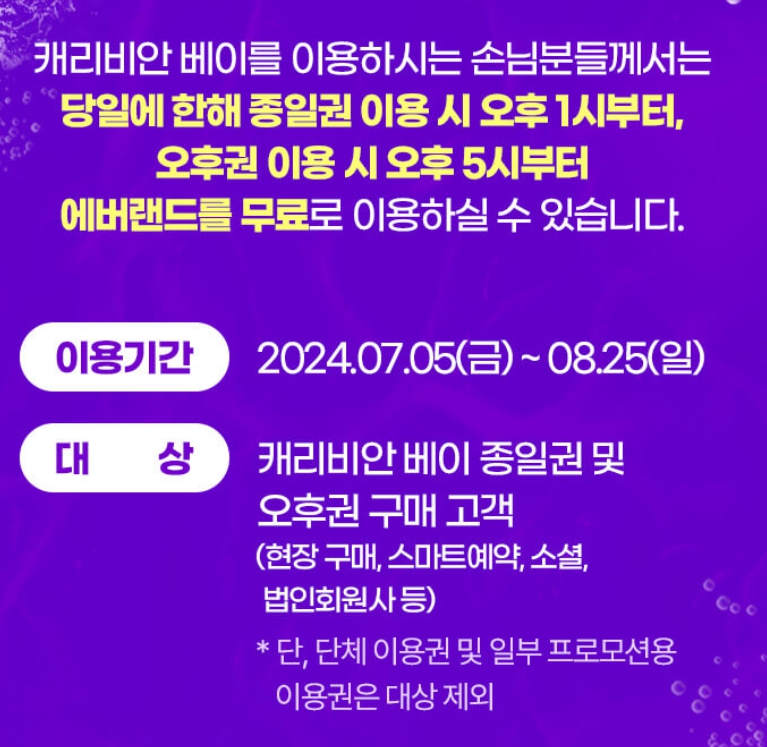 캐리비안베이뿐만 아니라 에버랜드 등 다른 놀이공원에서도 할인 혜택을 제공합니다.